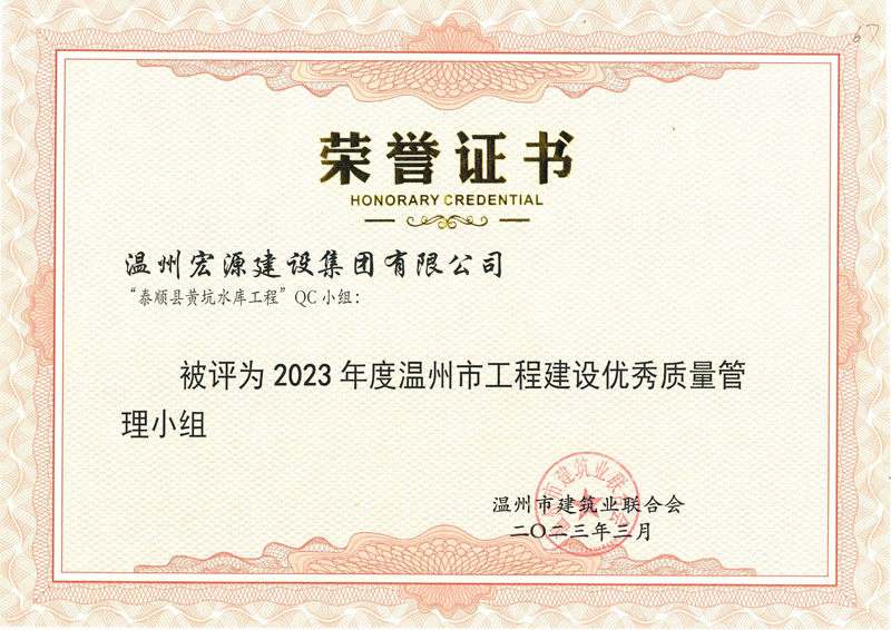 泰順縣黃坑水庫(kù)工程QC小組2-23年度溫州市工程建設(shè)優(yōu)秀質(zhì)量管理小組