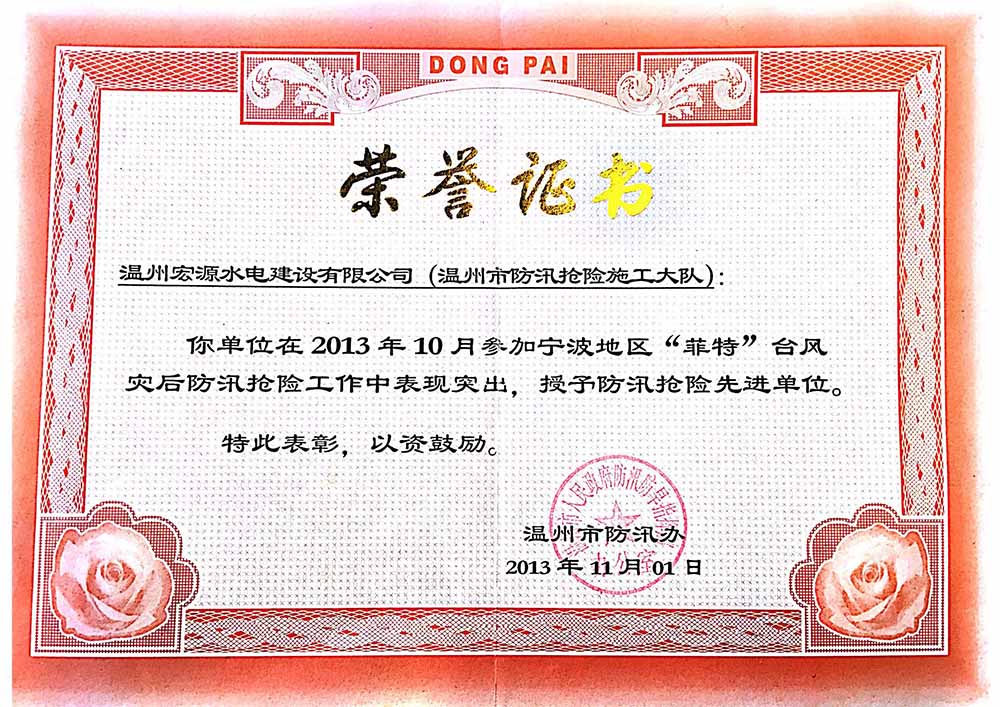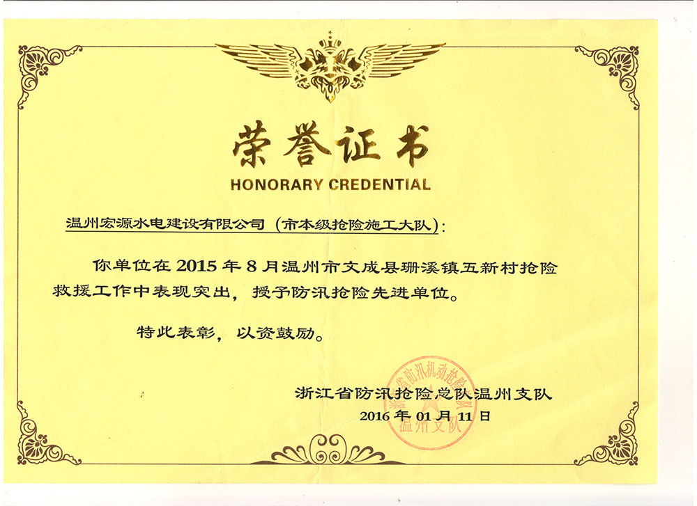 2015防汛搶險(xiǎn)先進(jìn)單位(文成珊溪)