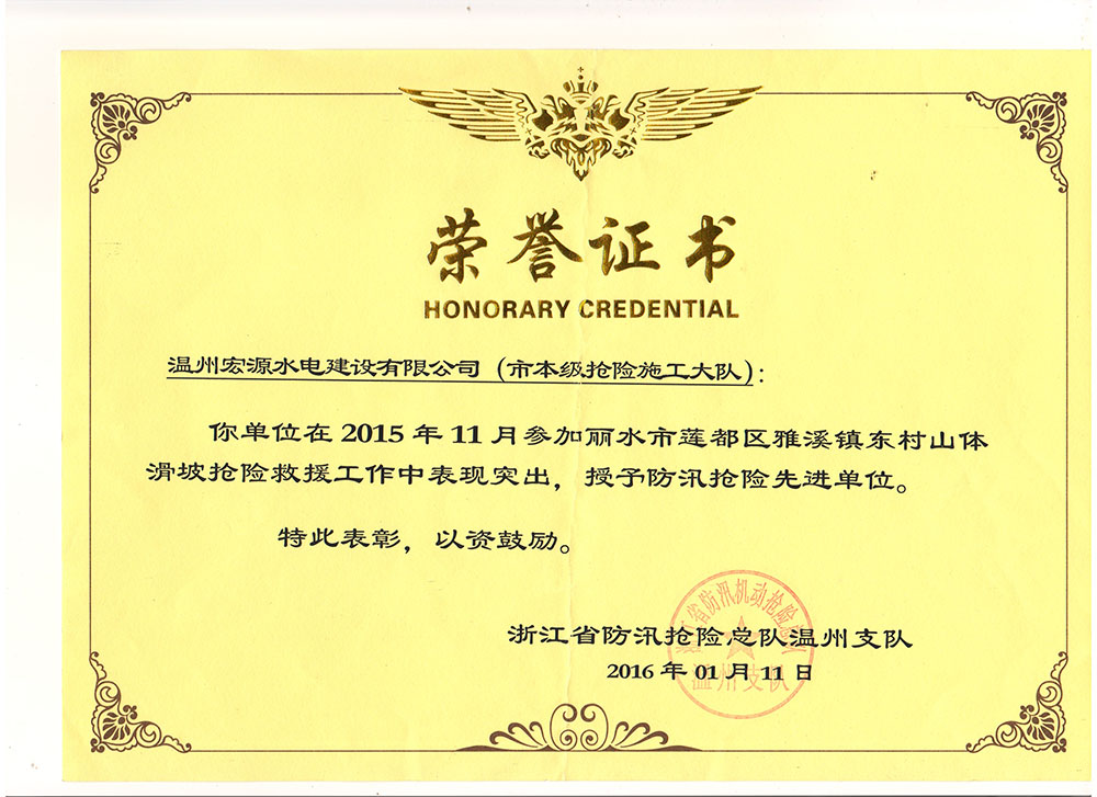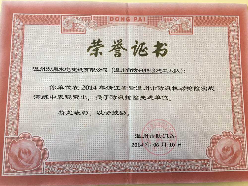 2015防汛搶險(xiǎn)先進(jìn)單位(麗水蓮都)