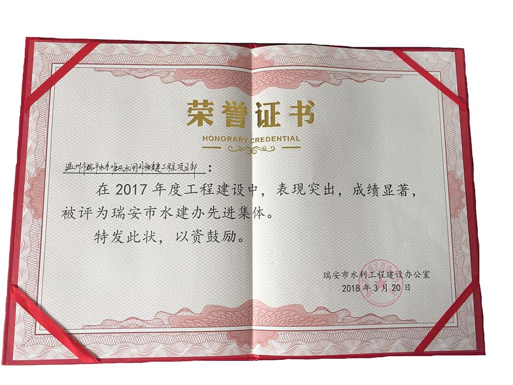 塘頭水閘2017年先進(jìn)集體榮譽(yù)證書