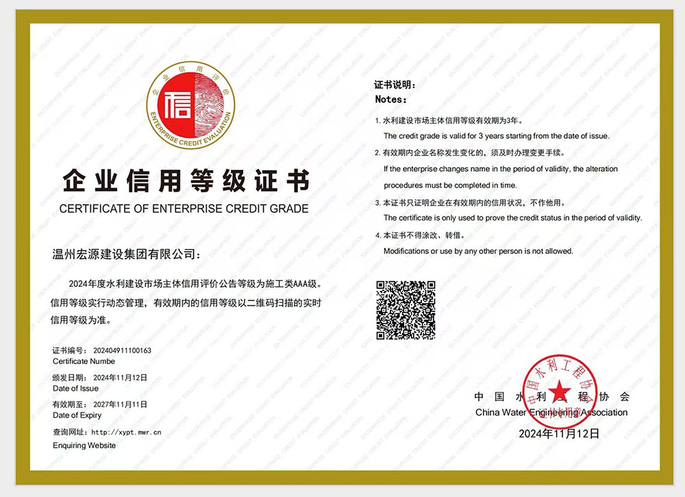 水利建設(shè)市場(chǎng)主體信用評(píng)價(jià)AAA級(jí)證書