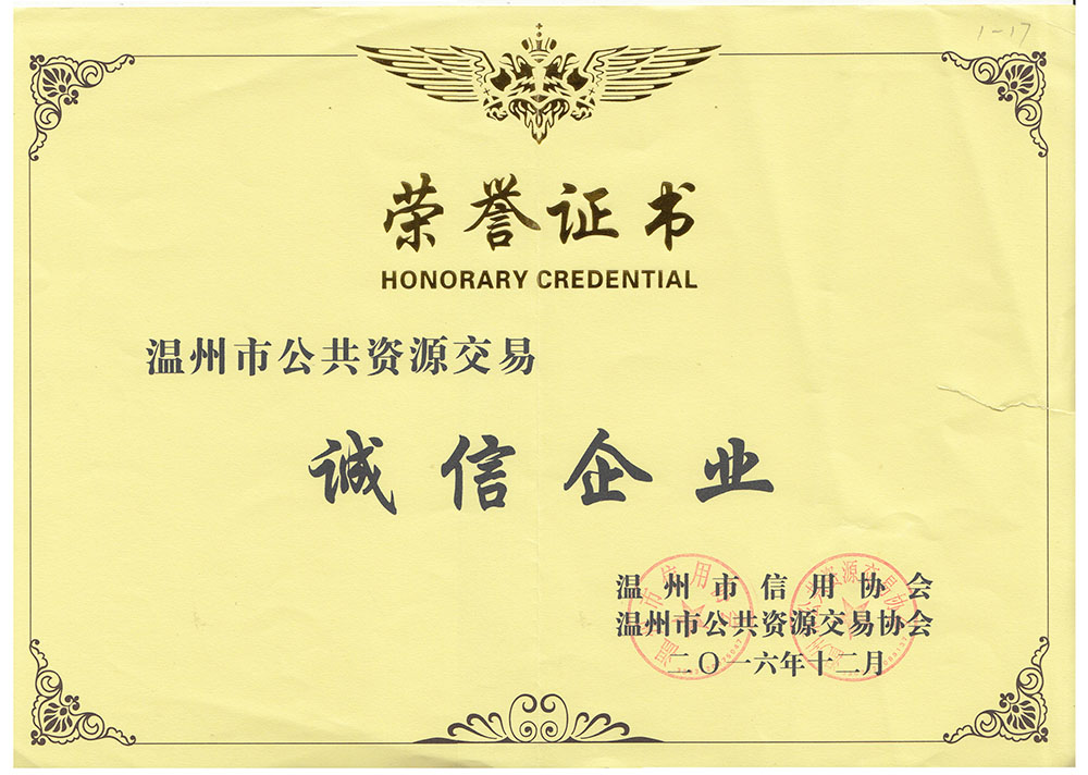溫州市公共資源交易誠(chéng)信企業(yè)