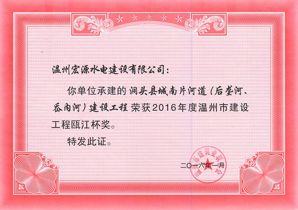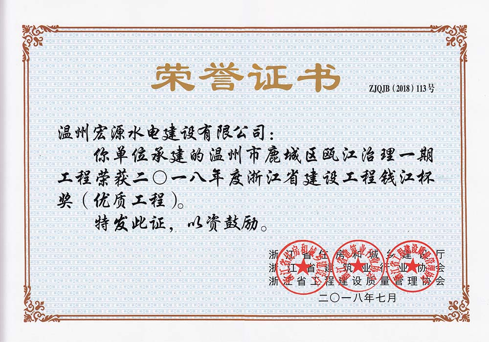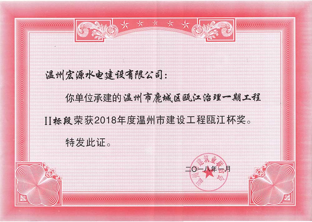 溫州市鹿城區(qū)甌江治理一期工程2018年度錢江杯