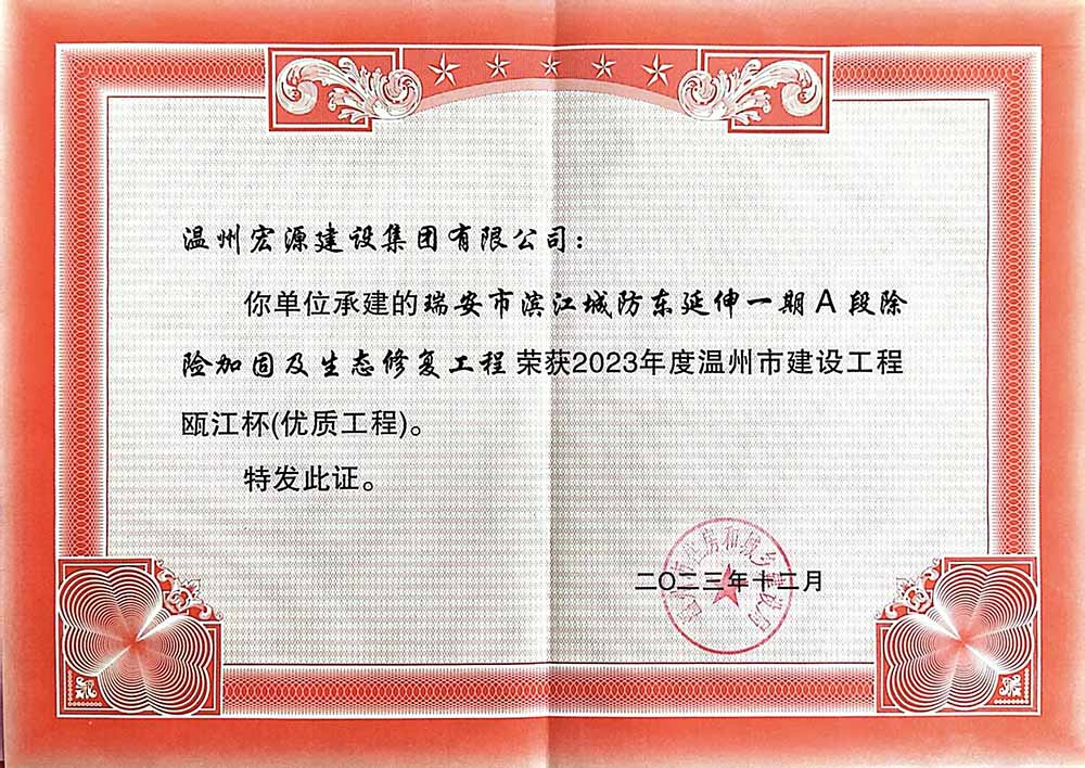 瑞安市濱江城防東延伸一期A段除險(xiǎn)加固及生態(tài)修復(fù)工程2023年度甌江杯