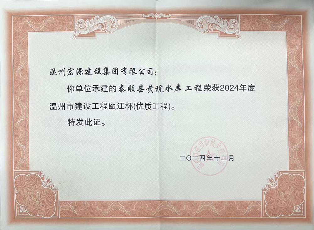 泰順縣黃坑水庫(kù)工程2024年度甌江杯