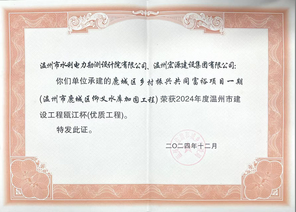 溫州市鹿城區(qū)仰義水庫(kù)加固工程2024年度甌江杯