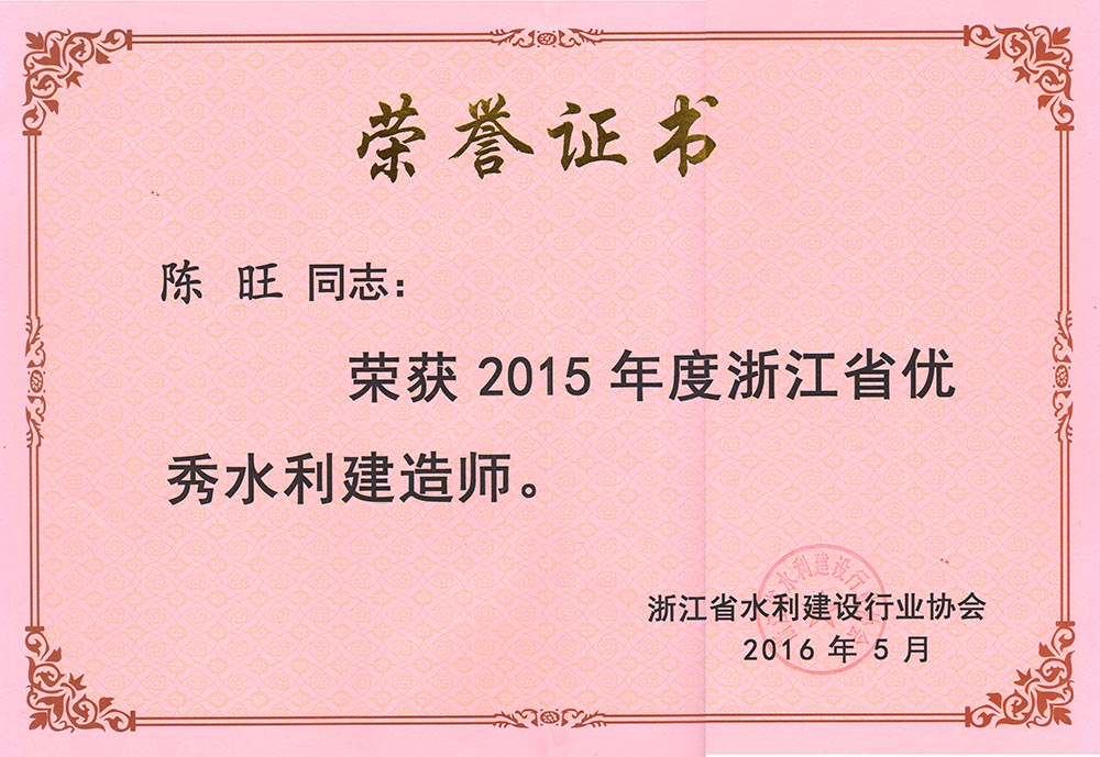 陳旺2015年度浙江省優(yōu)秀水利建造師