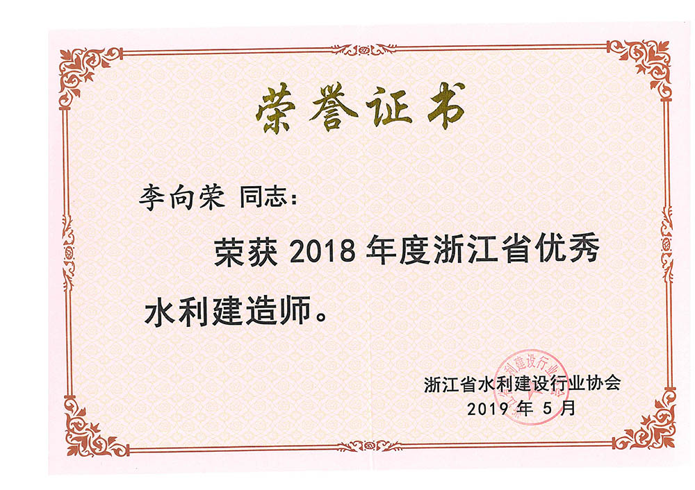 2018年度李向榮優(yōu)秀水利建造師證