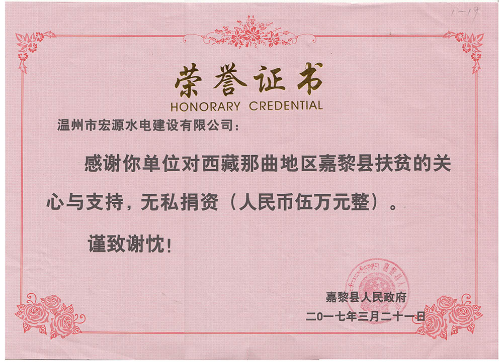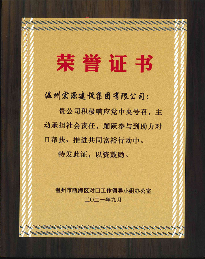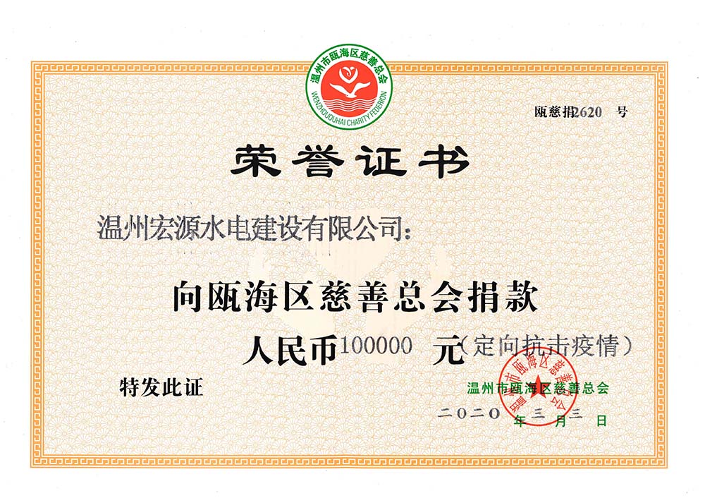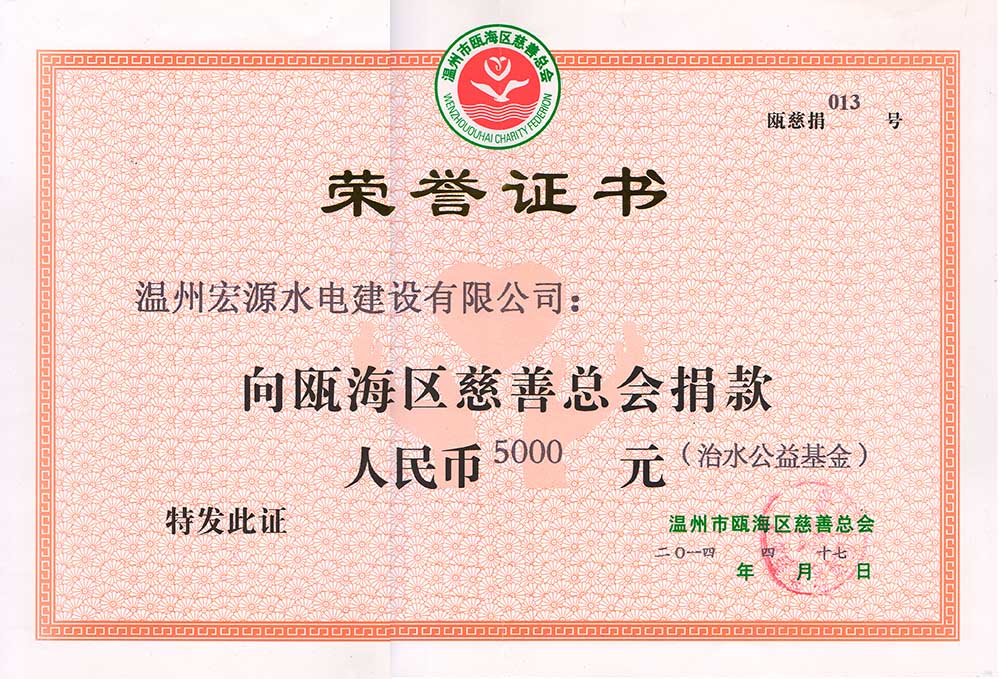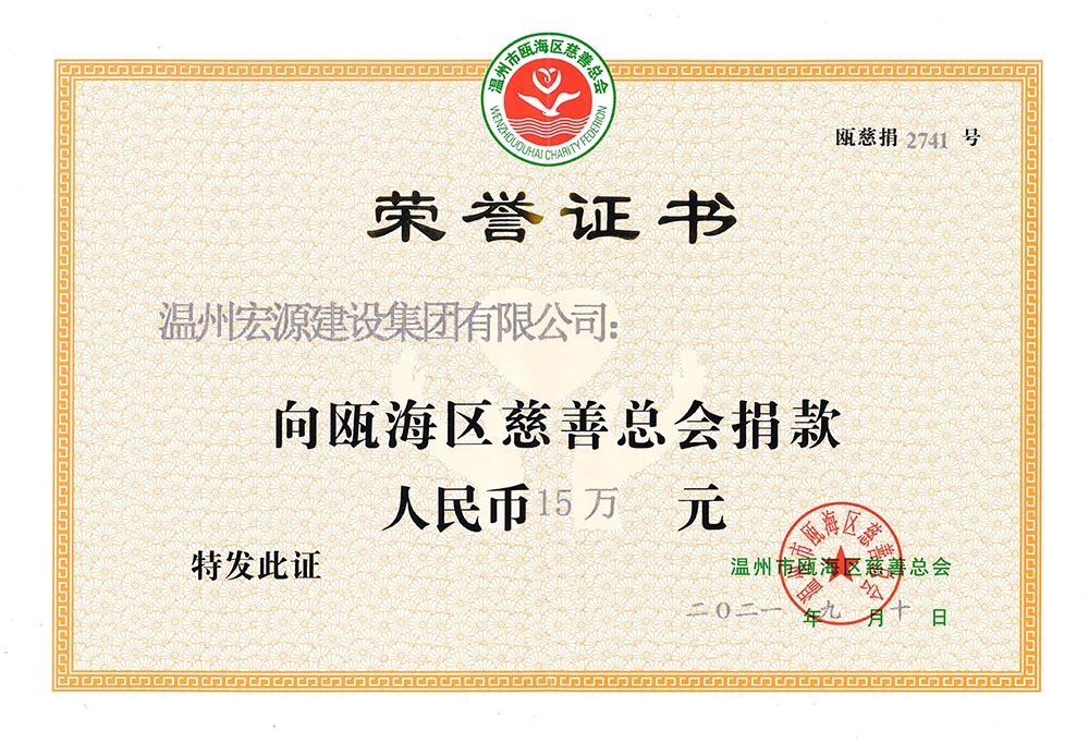 榮譽(yù)證書(甌海慈善總會(huì)捐款15萬(wàn))