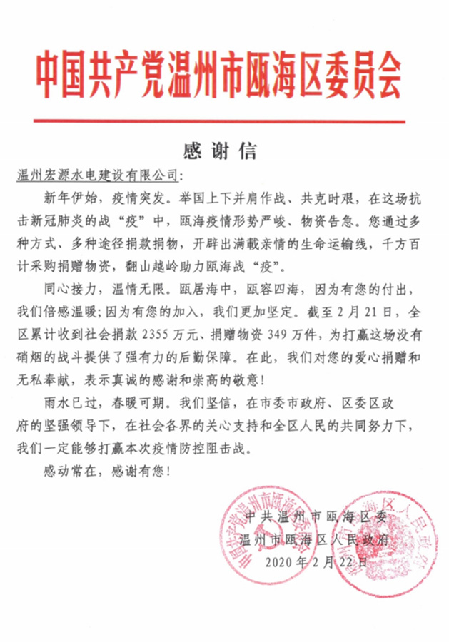 2020.2.22甌海人民政府感謝信