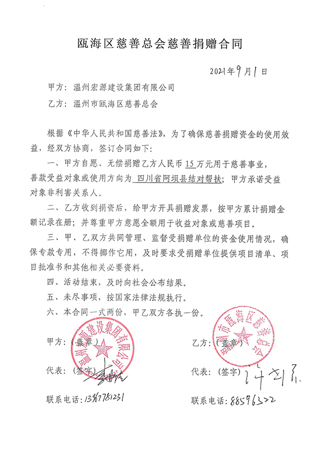 捐款合同及結(jié)對(duì)幫扶協(xié)議