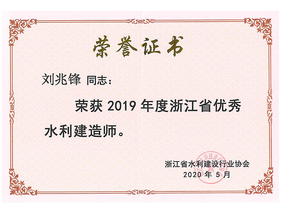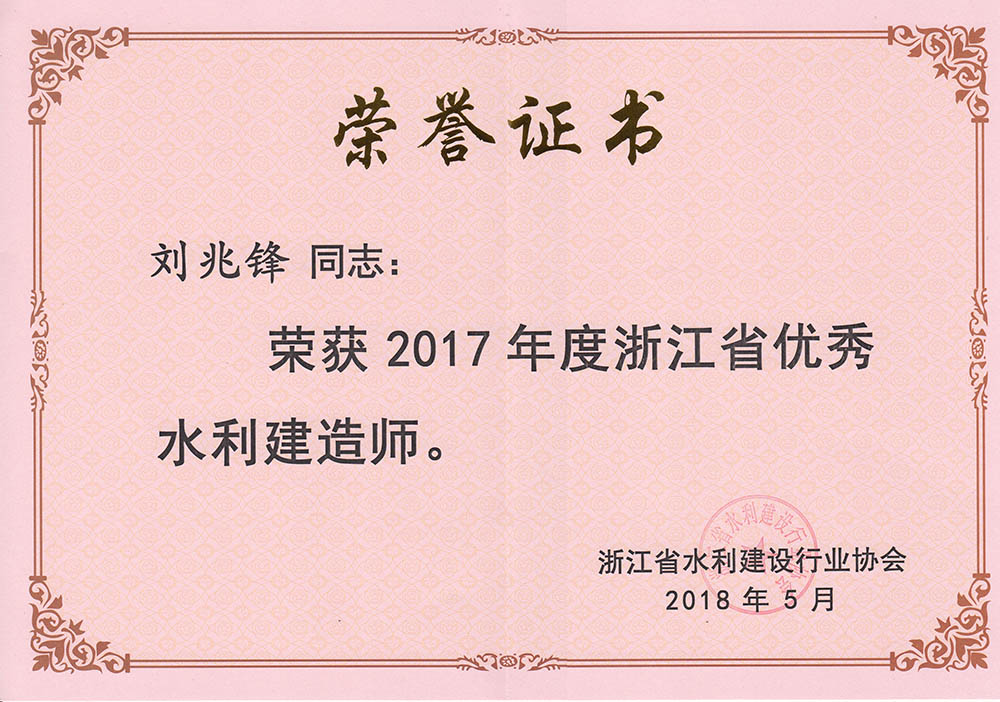 劉兆鋒2017年度浙江省優(yōu)秀水利建造師
