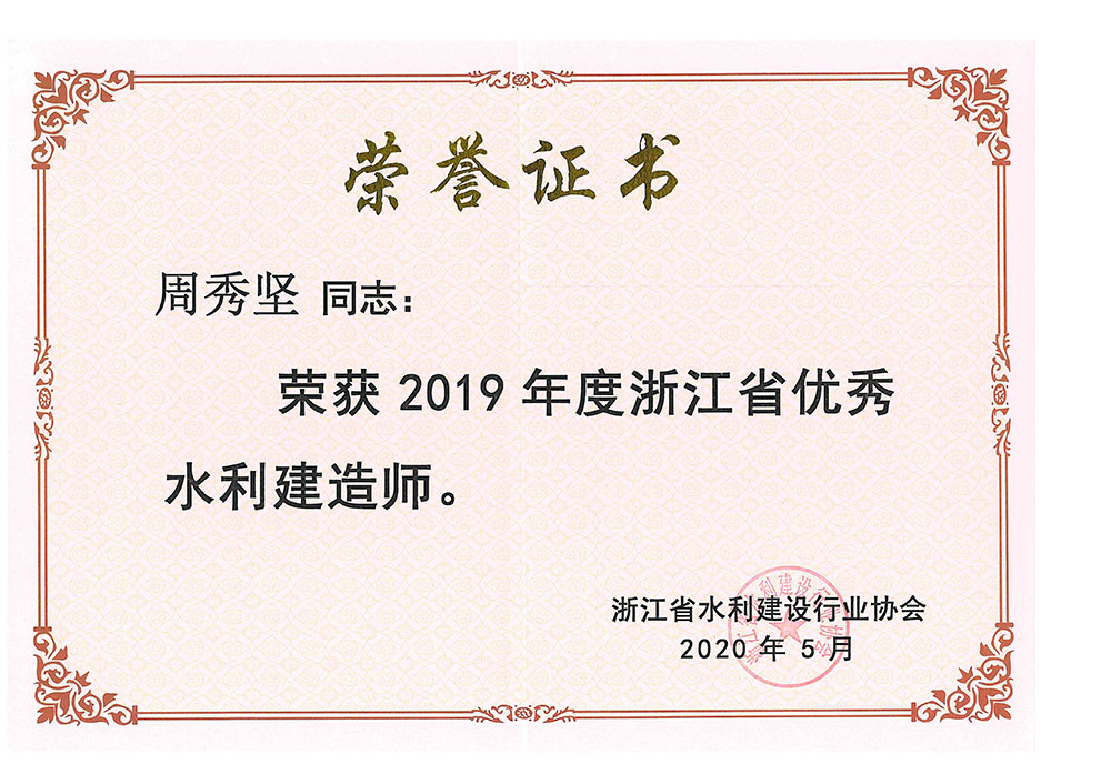 周秀堅(jiān)2019年省優(yōu)秀水利建造師