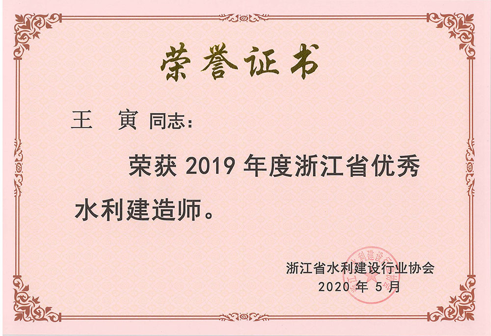 王寅2019年度省優(yōu)秀水利建造師