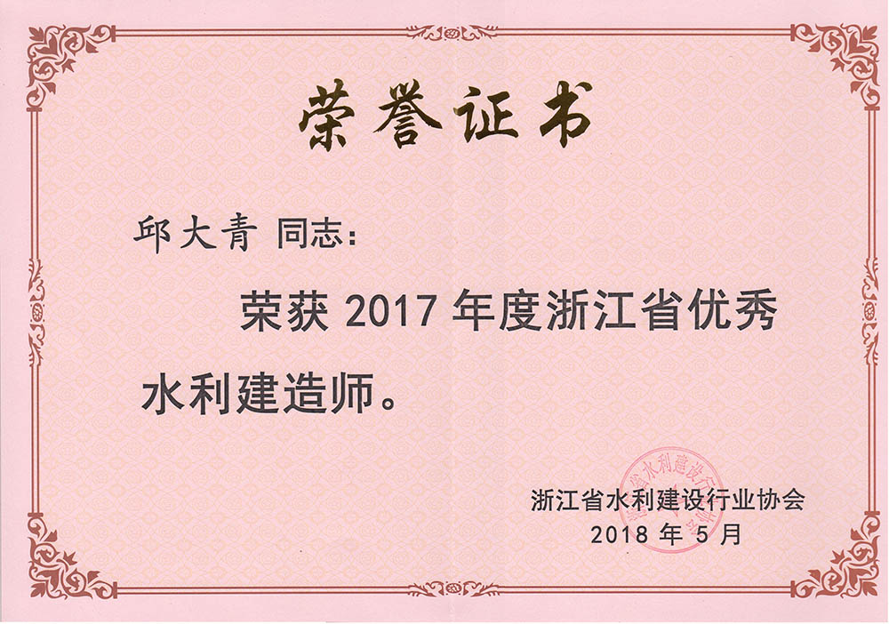 邱大青2017年度浙江省優(yōu)秀水利建造師