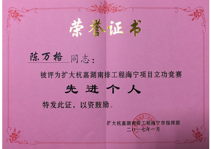陳萬(wàn)格-擴(kuò)大杭嘉湖南排工程立功個(gè)人