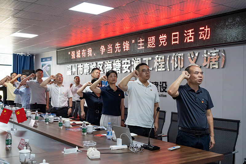 全體黨員起立,重溫入黨誓,鏗鏘有力的宣誓聲響徹項(xiàng)目部。隨后,各支部先后領(lǐng)學(xué)了“習(xí)近平總書記近期關(guān)于防汛工作和安全生產(chǎn)工作的重要指示精神”、“習(xí)近平總書記關(guān)于全面加強(qiáng)黨的紀(jì)律建設(shè)的重要論述”、浙江黨史上的“為黨守紀(jì)”故事啟示錄、鹿城區(qū)“黨建強(qiáng)城先鋒行動(dòng)”機(jī)關(guān)效能建設(shè)、違紀(jì)違法人員的懺悔實(shí)錄案列評(píng)析等內(nèi)容。此外,市水利局機(jī)關(guān)第三支部為參建各方黨員開(kāi)展了“創(chuàng)優(yōu)奪杯”專題業(yè)務(wù)指導(dǎo),為鹿城海塘安瀾工程(仰義段)后續(xù)評(píng)選省級(jí)、國(guó)家級(jí)優(yōu)質(zhì)工程打好基礎(chǔ)。