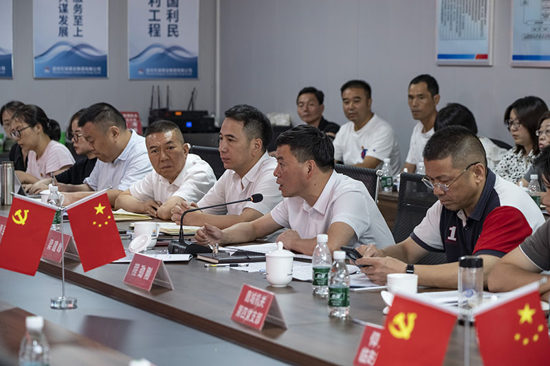 在交流發(fā)言環(huán)節(jié),各支部黨員代表圍繞主題進(jìn)行了精彩的發(fā)言。公司總經(jīng)理、民盟甌海區(qū)基層委副主委林勇軍首先感謝各位領(lǐng)導(dǎo)夏日送清涼,項(xiàng)目部倍受鼓舞,進(jìn)一步增強(qiáng)了干好項(xiàng)目的信心;其次表示公司黨建工作是企業(yè)文化的重要組成部分,以學(xué)習(xí)黨紀(jì)助創(chuàng)清廉民企,以黨建引領(lǐng)促企業(yè)高質(zhì)量發(fā)展,為水利建設(shè)貢獻(xiàn)宏源力量,共筑美好強(qiáng)城。